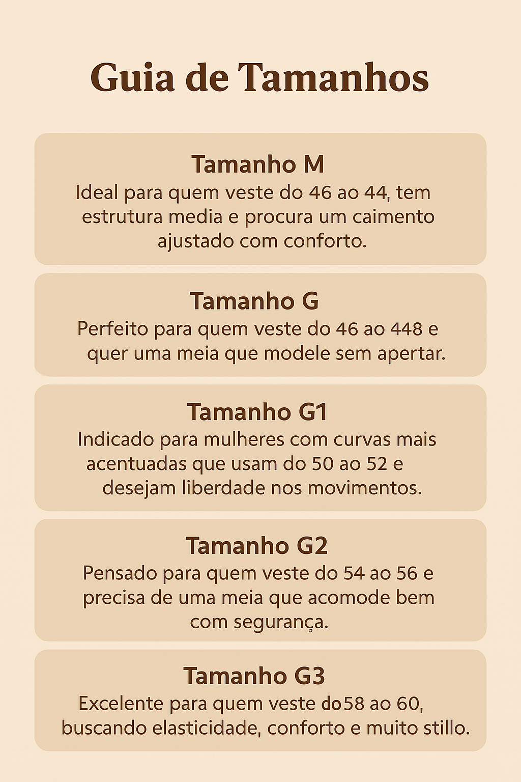 GG (48) → Cintura: 98-104cm | Quadril: 120-126 cm